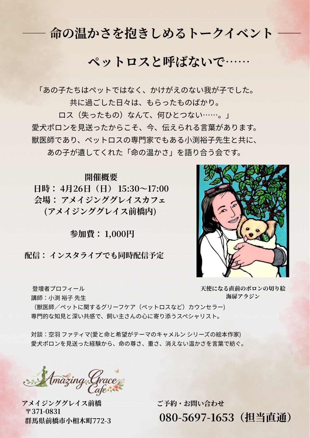 🐶を見送ったばかりの絵本作家 空羽(くう)ファティマの対談で送る「命の温かさを抱きしめる」会  。